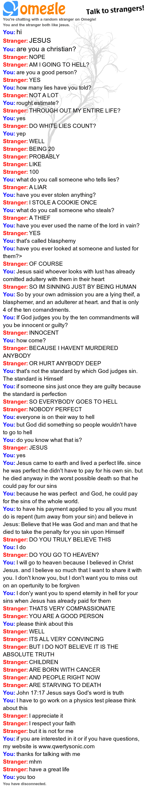 Here is a conversation I had with a gay guy. Notice I was gentle with him and at least at first I completely ignored that he was gay. Homosexuality is a sin but it is no greater than any other sin. I think that is something Christians forget. The only reference to his name I caught was Ntmy.